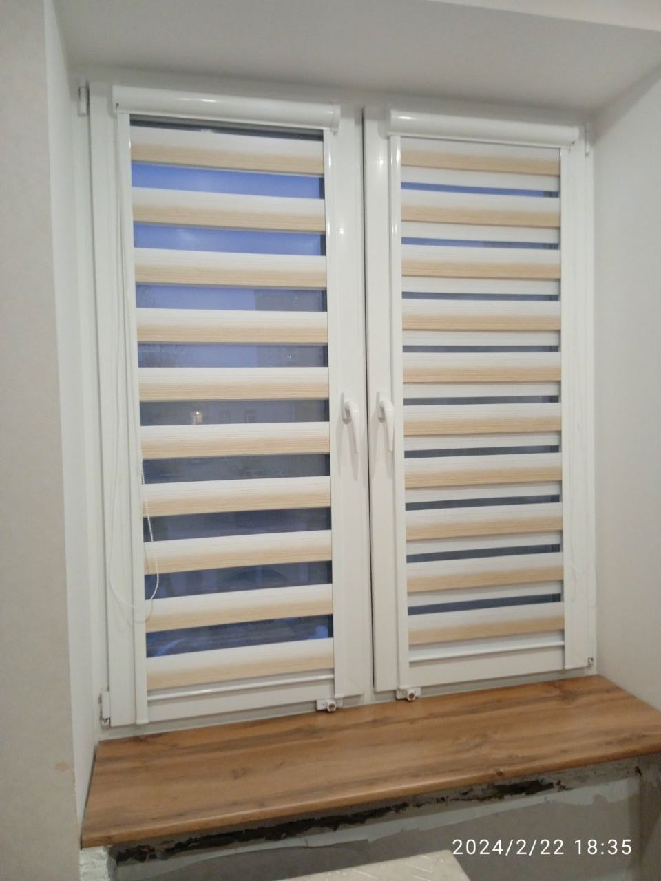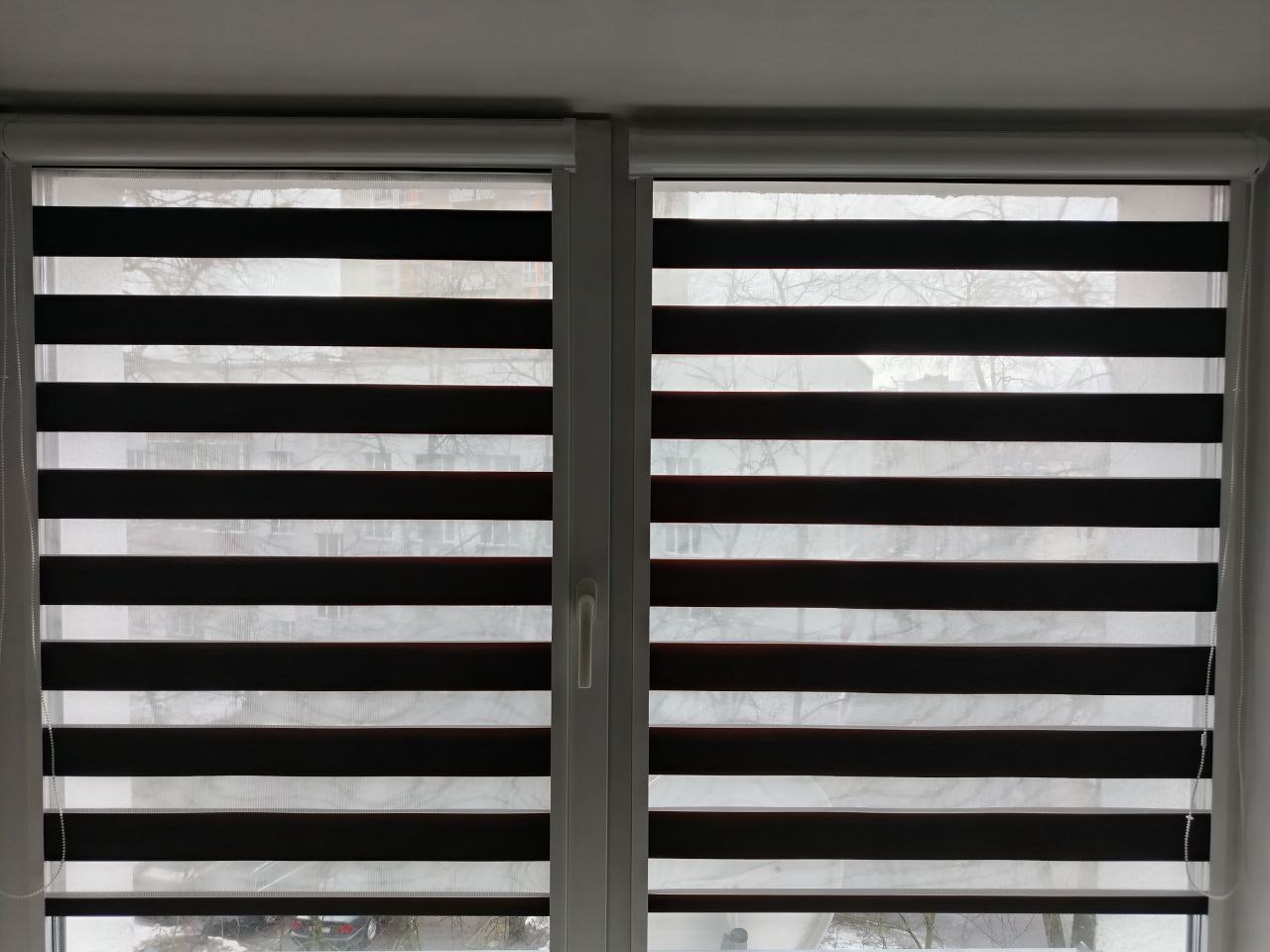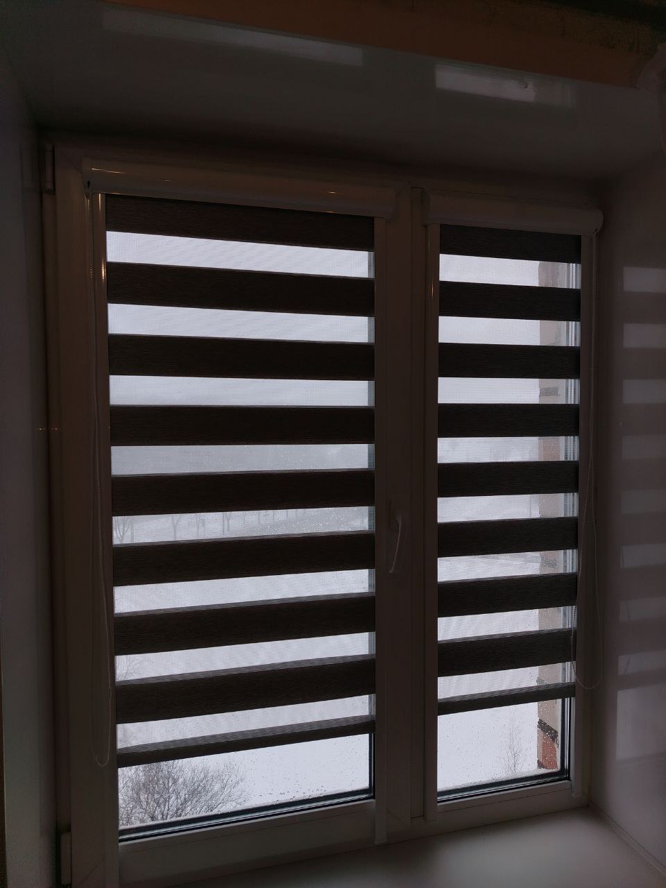 Рулонные шторы "День-ночь" МИНИ - это система с открытым валом намотки, которая устанавливается на створки. Её не нужно поднимать, что бы открыть окно на проветривание. Можно монтировать как без сверления, так и со сверлением.