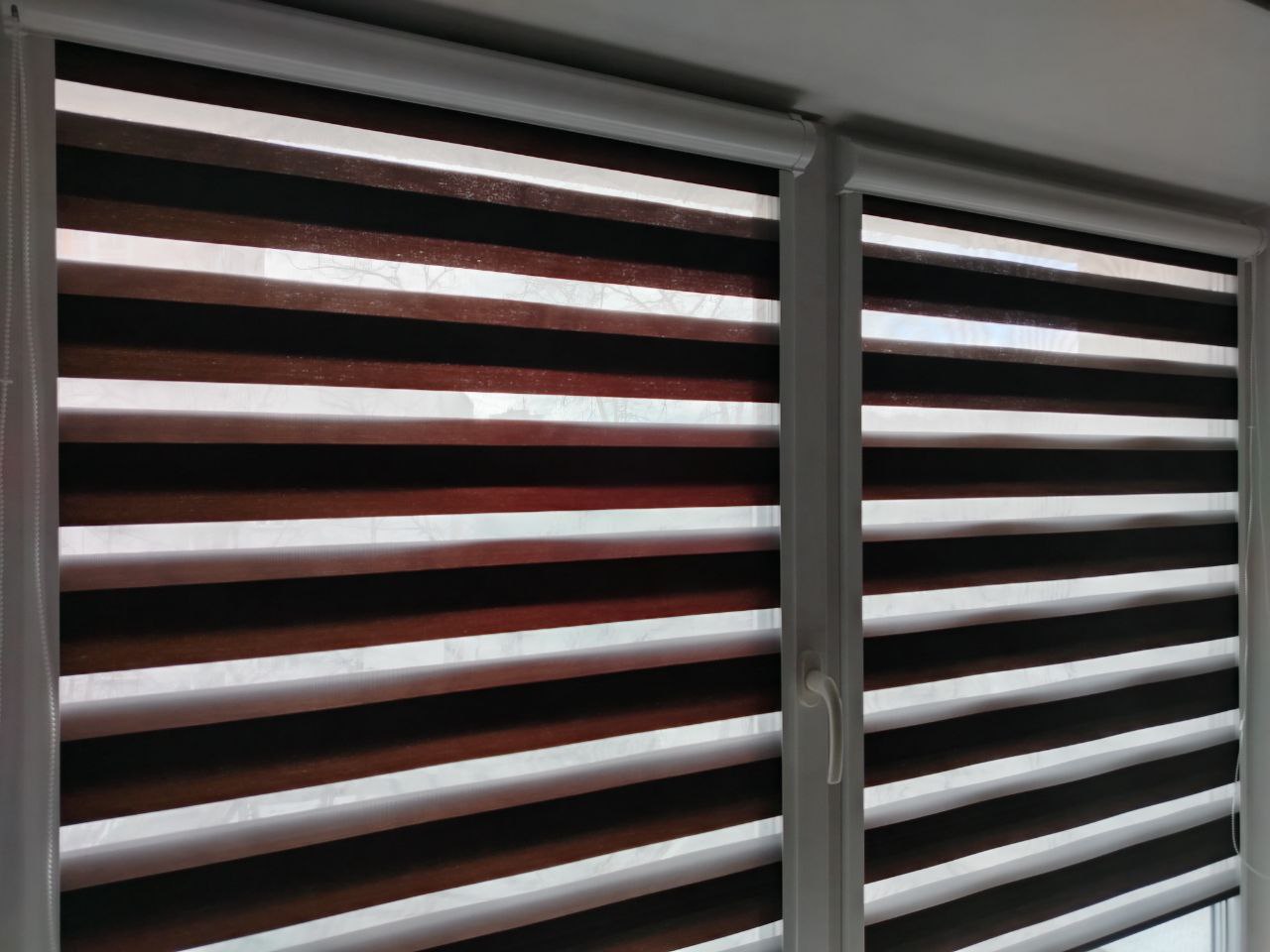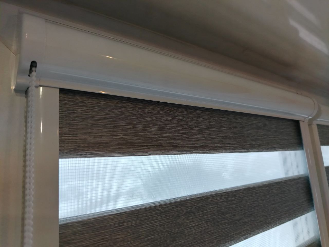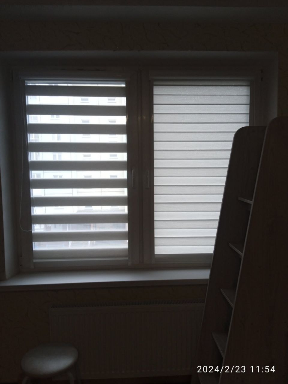 Рулонные шторы "День-ночь" МИНИ - это система с открытым валом намотки, которая устанавливается на створки. Её не нужно поднимать, что бы открыть окно на проветривание. Можно монтировать как без сверления, так и со сверлением.